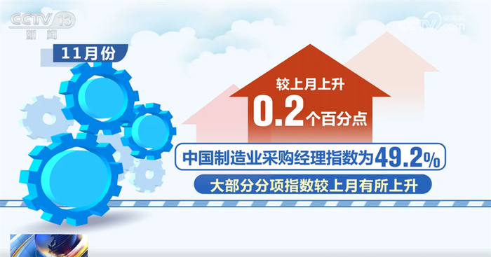 11月份中国制造业采购经理指数为49.2%,较上月上升0.2个百分点,大部分分项指数较上月有所上升。