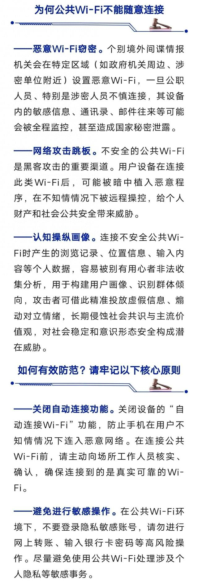 国安部披露:境外间谍情报机关在政府周边等特定区域设置恶意Wi-Fi,公职人员不慎连接 敏感信息或被全程监控