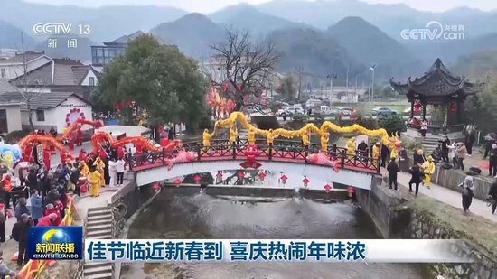 张灯结彩,喜迎新春。在安徽芜湖霭里村,小桥流水和亭台楼阁被精心装点,热热闹闹的年俗活动轮番上演,舞龙的队伍踏着铿锵的鼓点穿梭前行,让乡村的年味更加活力满满、热气腾腾。在贵州赤水,天苑社区的团年饭热闹开席。这里是赤水最大的易地扶贫搬迁安置点,通过发展特色产业、提供就业岗位,居民年人均可支配收入从搬迁前的不足4000元,增长到如今超2万元。今年,3000余名来自14个乡镇的搬迁群众欢聚一堂,共话团圆、共贺新春。