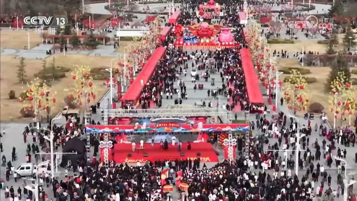 在甘肃平凉,当地的年货大集把线下展销和线上直播带货相结合,农民家自产的土特产被仔细包装后都带到了大集。原本在直播间的主播也走到大集,直播起大集的火热场面。