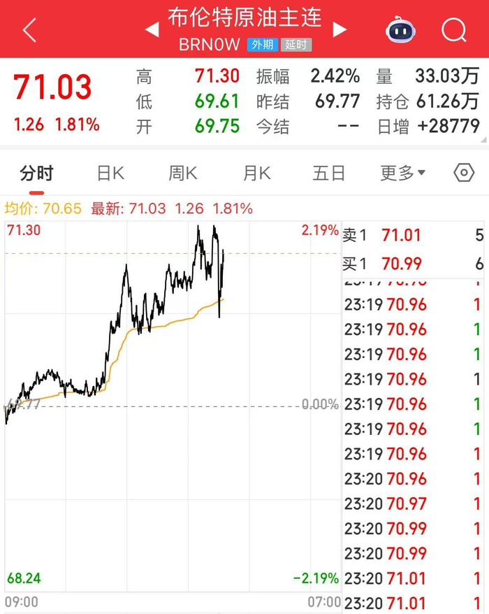 地缘紧张局势升温,油价冲高后企稳。截至发稿前,布油、美油均涨超1%。
