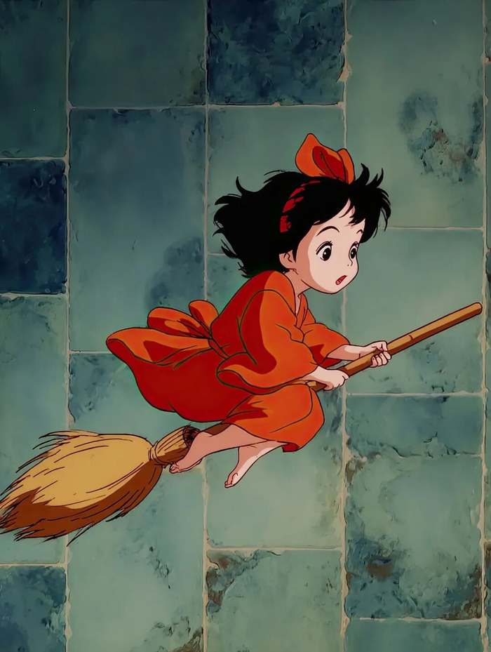 Prompt:A little Asian witch flies on a broomstick. --sref 2794220535 --stylize 250 --ar 3:4 --v7.0