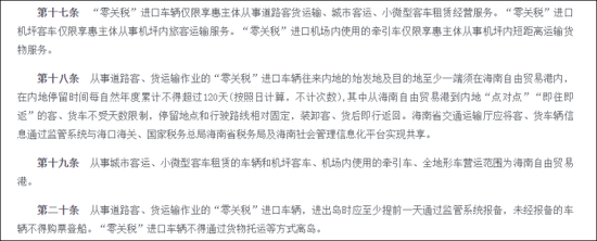 就算你通过企业渠道获得了购买资格,也会受到严格限制。首先,这辆车不能自由转让——即使因为特殊原因需要转让,转让前也应征得海口海关同意并办理相关手续,如果是转让给非享受优惠的主体还应补缴税款;其次,所有“零关税”进口车必须登记为营运性质,意味着15年就要报废;第三,这台车每年在海南以外地区累计停留不得超过120天。