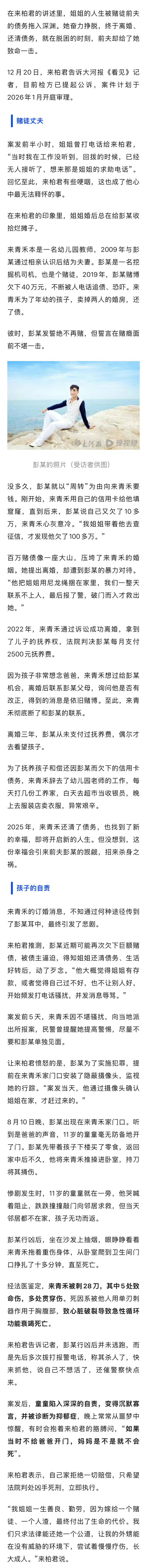 2025年8月10日晚,山东临沂某小区,11岁的男孩童童(化名)蹦跳着为父亲彭某开门,心中是久别重逢的欣喜。彭某带着童童下楼买了零食,重新回到家后,彭某将前妻来青禾(化名)推搡进屋内,当着儿子面持刀行凶,并任由来青禾在眼前死亡后报警自首。