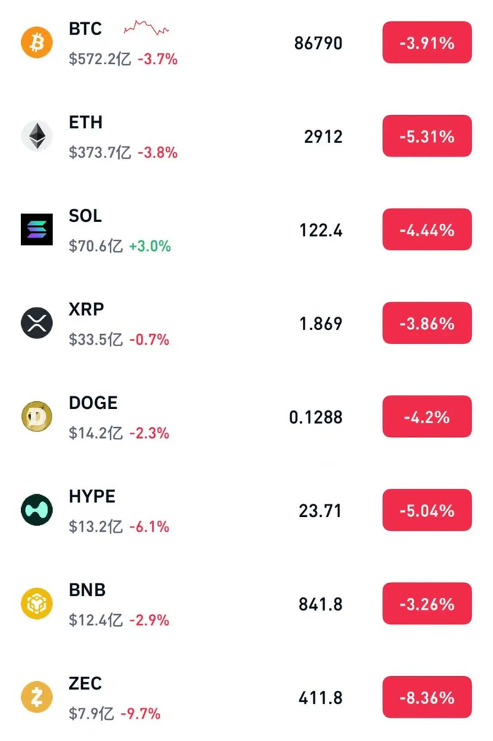 加密货币方面,多只币种集体大跌,比特币跌至87000美元下方,近24小时全球超9万人爆仓。