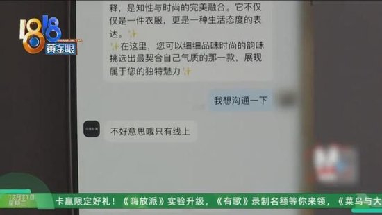 采访当天,张女士希望和店长沟通,店铺客服回复“不好意思 只有线上”。