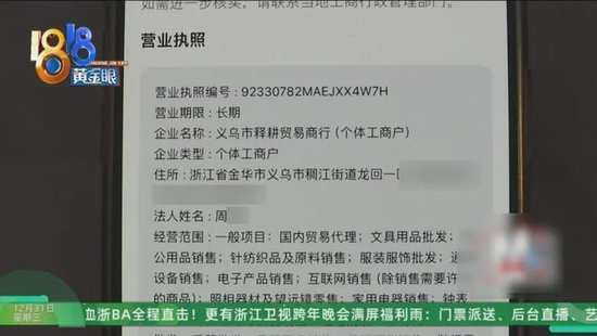 再看平台上的店铺营业执照,企业名称是义乌市释耕贸易商行,经营者姓周,公开平台上没有留下联系方式。
