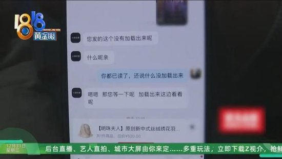 12月29号,张女士继续给店铺客服发了直播录屏,客服表示视频没有加载出来,没有进一步的解释。
