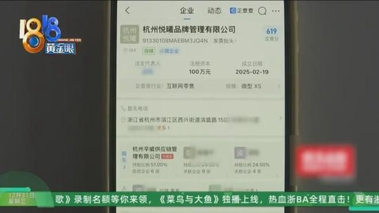 衣服吊牌上写着“杭州悦曦品牌管理有限公司”留了一个固定电话,打过去是空号,企业信息公开平台显示这家公司是存续状态,没有留下联系方式。