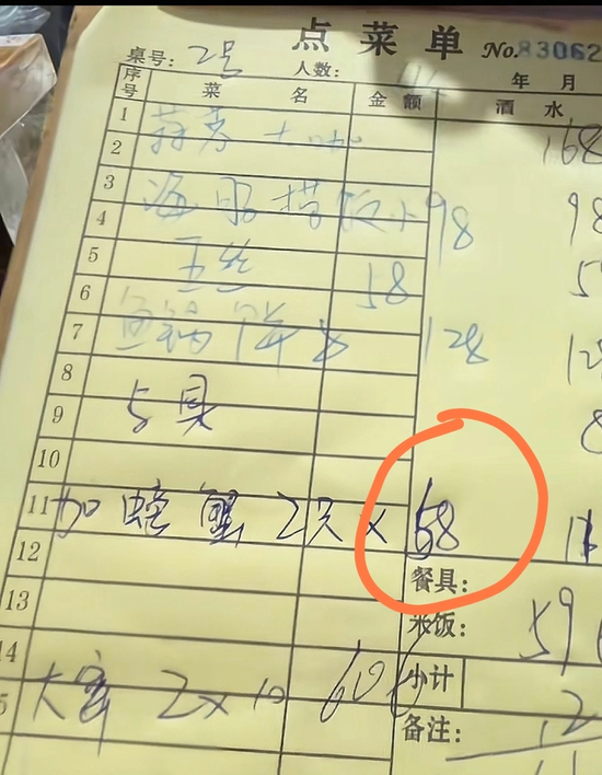 曾因10元打包袋上热搜的山东烟台老蓬莱酒楼仍在“宰客”?顾客:点螃蟹时称58元/斤,结账变58元/只