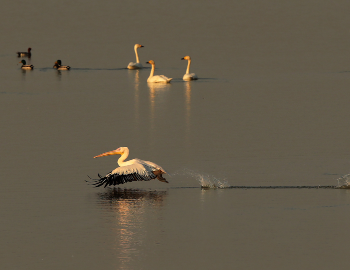·鄱阳湖首次记录到国家一级保护野生动物白鹈鹕。