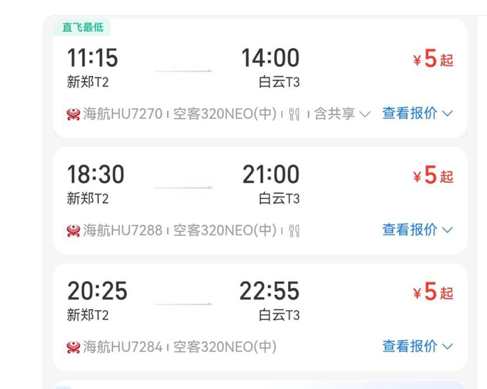 ·海航郑州飞广州现5元低价票,航司:系统临时故障所致,已售出的所有机票全部有效。