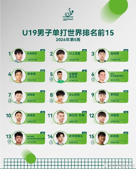 WTT常规挑战赛马斯喀特站男单冠军温瑞博排名上升7个名次位列第24,刷新个人职业生涯排名新高;亚军帕特里克·弗朗西斯卡排名上升1个名次位列第19;八强黄镇廷排名上升13个名次位列第45。