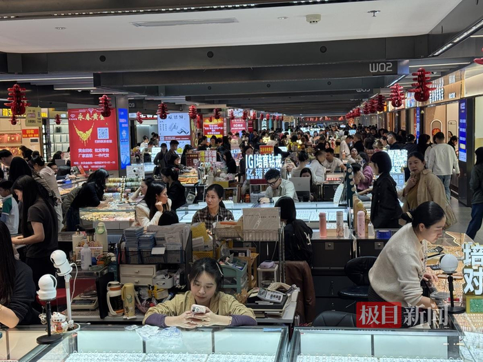 当日下午,极目新闻记者走访深圳水贝黄金市场发现,尽管金价回落,市场内仍不乏前来选购黄金首饰的顾客。同时,黄金回收柜台前也挤满了等候的顾客。
