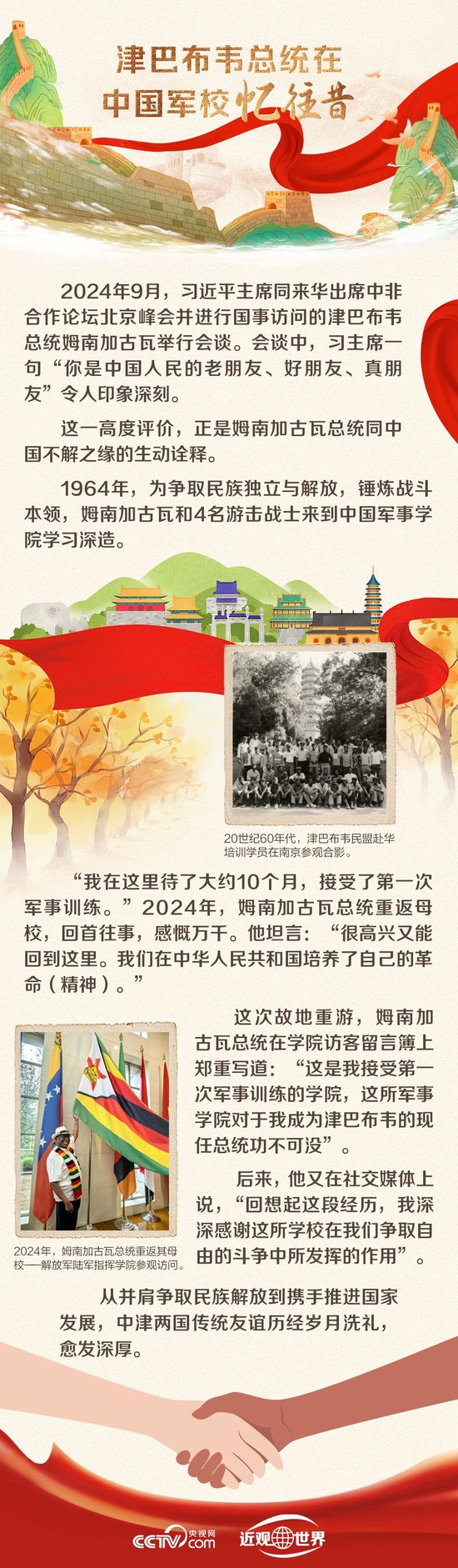 1月28日,习近平主席复信津巴布韦解放斗争老战士,高度赞扬他们“青年时代投身民族解放伟大事业,远离家乡同中国结下不解之缘和战斗情谊”。习主席对老战士心系中津、中非友好给予肯定,希望他们“带动更多非洲青年投身中津、中非友好事业”。