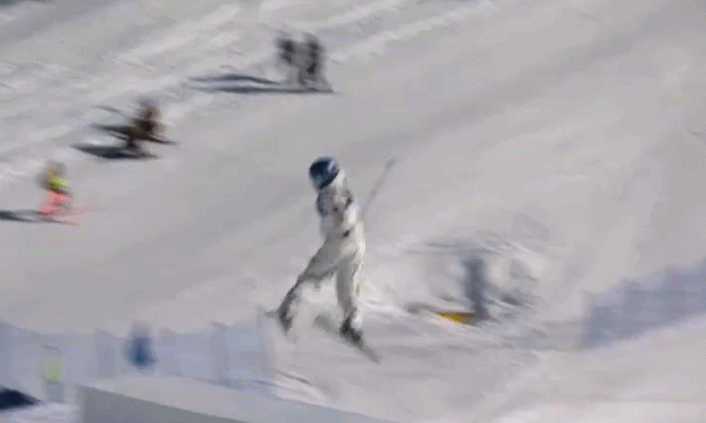 谷爱凌在首轮第二个出场,但她出现失误意外摔倒,随后坚持完成整套滑行,结束这一跳,得分1.26分。谷爱凌之后迅速调整,第二跳流畅完成获得75.3分的高分最终晋级。