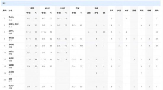 湖北队方面,李柏润24分4篮板1助攻1抢断,王晓明20分1篮板1抢断,李慕豪17分7篮板3助攻3盖帽。