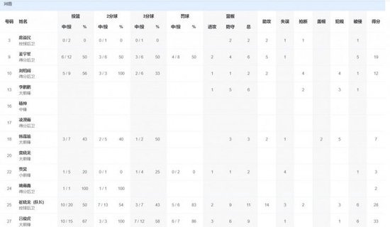 河南队方面,吕俊虎33分9篮板,崔晓龙28分11篮板14助攻,姜宇星19分6篮板5助攻。