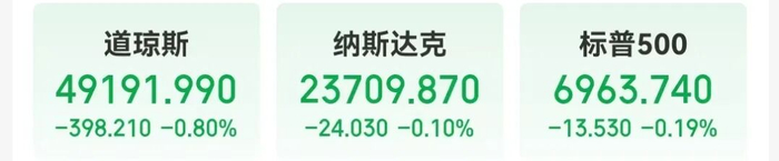 当地时间1月13日,美股三大指数齐跌。道指下跌398.21点,跌幅0.80%;纳指跌0.1%,标普500指数跌0.19%。