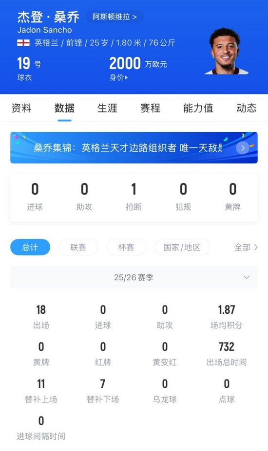 桑乔的未来尚不明朗,他本赛季外租维拉仅仅担任边缘角色,这样的表现可能很难为他吸引到追求者。