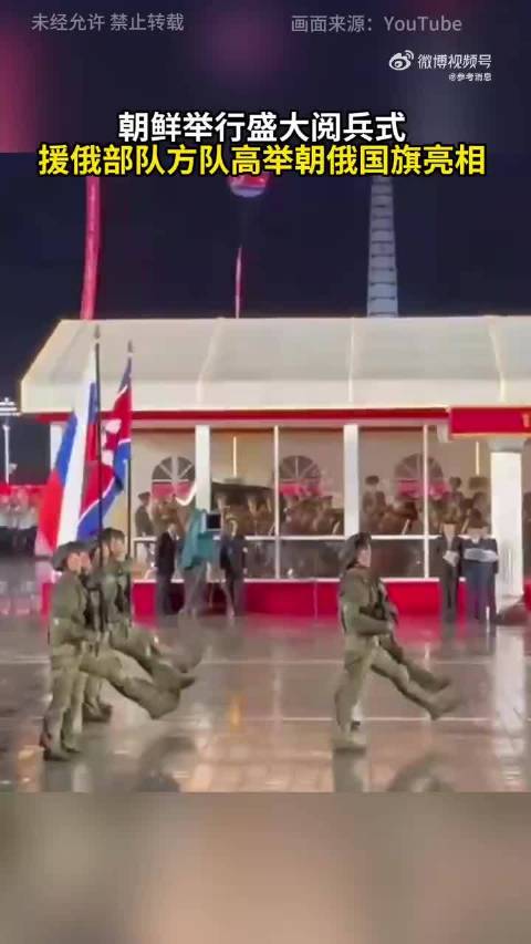 朝鲜阅兵:援俄方队高举朝俄国旗亮相