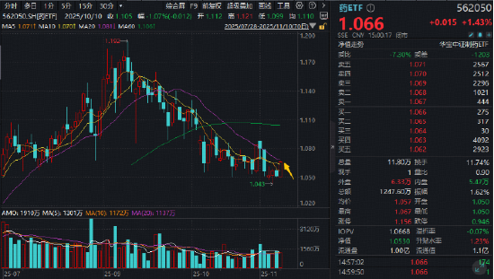 A股制药板块同步反弹,华东医药、特宝生物等创新药概念股领涨,片仔癀、云南白药等中药龙头涨逾2%助攻。场内唯一药ETF(562050)重仓创新药,兼顾中药,场内收涨1.43%,成功站上5日及10日线。