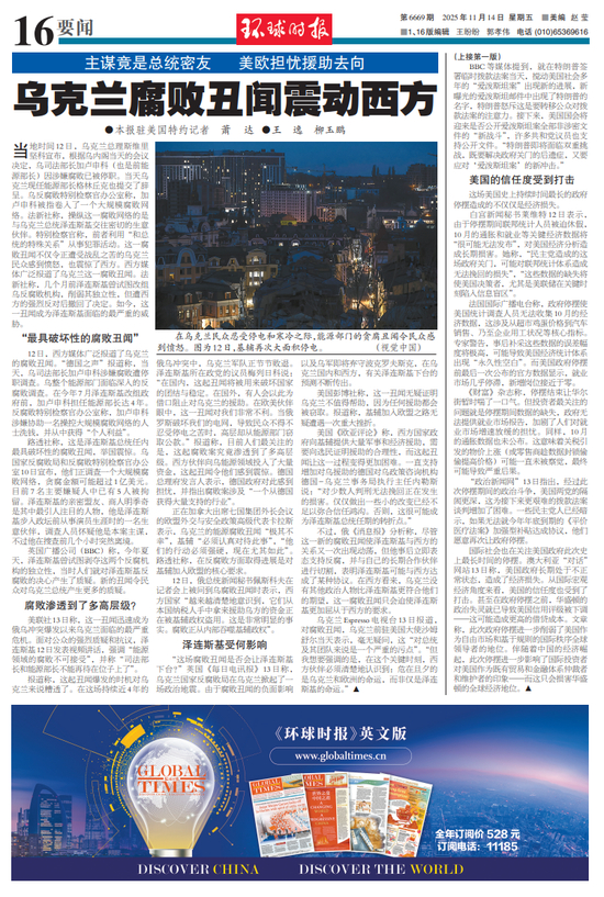 报道称,这起丑闻爆发的时机对乌克兰来说糟透了。在这场持续近4年的俄乌冲突中,乌克兰军队正节节败退。泽连斯基所在政党的议员梅列日科说:“在国内,这起丑闻将被用来破坏国家的团结与稳定。在国外,有人会以此为借口阻止对乌克兰的援助。在欧美伙伴眼中,这一丑闻对我们非常不利。当俄罗斯破坏我们的电网,导致民众不得不忍受停电之苦时,高层却从能源部门窃取公款。”报道称,目前人们最关注的是,这起腐败案究竟渗透到了多高层级。西方伙伴向乌能源领域投入了大量资金,这起丑闻令他们感到震惊。德国总理府发言人表示,德国政府对此感到担忧,并指出腐败案涉及“一个从德国获得大量支持的行业”。
