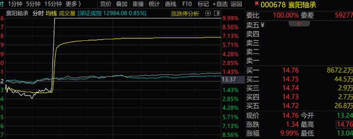 隔天,本来低开的襄阳轴承在上午10点20分左右突然拉升,不到五分钟直线涨停,随后以涨停板收盘。
