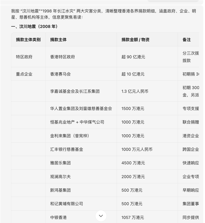 香港火灾捐款AI统计!汶川地震香港各界总捐款超 200 亿港元!