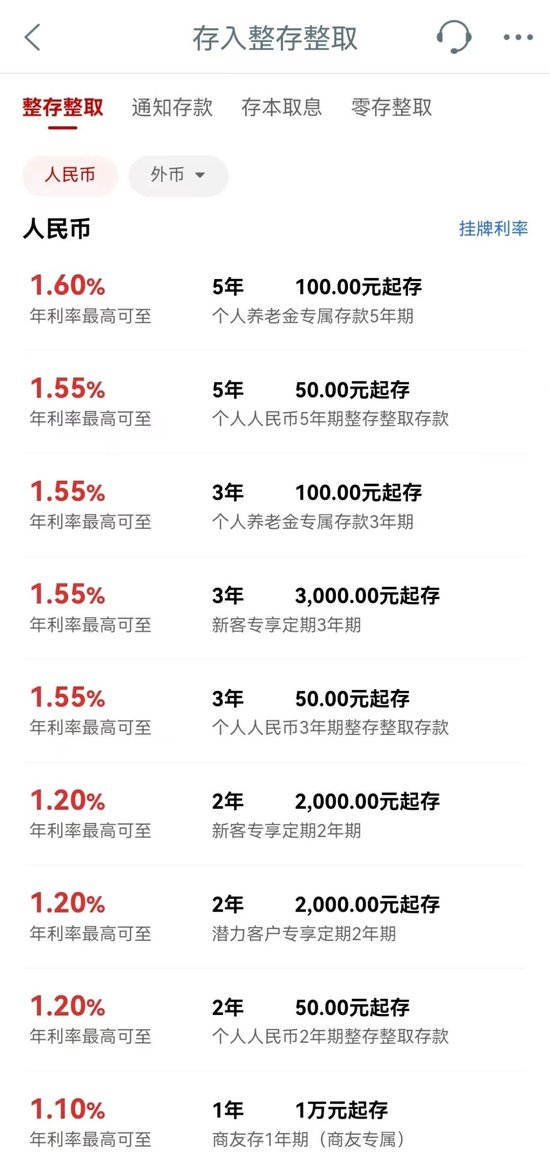 回溯来看,5年期大额存单的退出并非突然之举。以中国银行为例,今年5月20日,中国银行曾在官网公开发布了《关于发售2025年第一期个人大额存单的公告》,包括1个月、3个月、6个月、1年、2年、3年、5年共计七个期限。其中,3年期、5年期大额存单产品利率分别为1.55%、1.6%,但明确标注“仅面向特定客户发售”。而如今记者查询发现,目前中国银行在售的产品列表中,已没有5年期大额存单产品,只能在转让列表中找到少量的5年期产品。