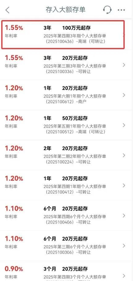 12月3日,据工商银行APP显示,该行正在发售的2025年第四期3年期个人大额存单,起步门槛标注为“100万元起存”,而年利率仅为1.55%。而最新的工行三年期定存产品的年利率,标注为“年利率最高可至1.55%”,而定存的起步门槛仅为50元。