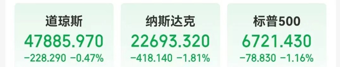当地时间12月17日,美股三大指数集体收跌。道指跌0.47%;纳指下跌418.14点,跌幅1.81%;标普500指数跌1.16%。
