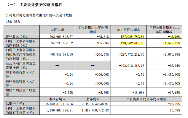 火星人最新发布的财报显示,2025前三季度,公司实现营业收入5.77亿元,同比下滑43.03%;实现净利润-2.18亿元,同比增长-1546.12%。