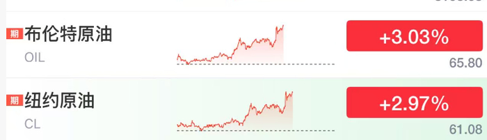 股市低迷的同时,原油市场却突然大涨。布伦特原油以及纽约原油价格涨幅均扩大到3%左右。