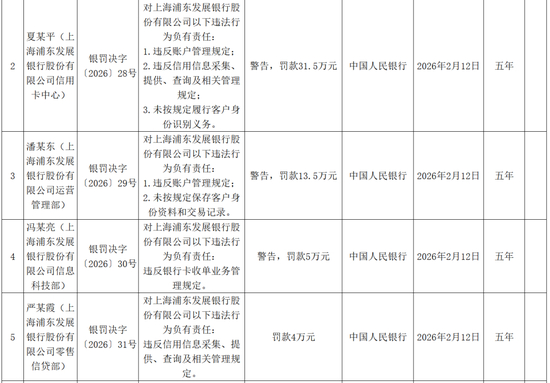 此外,浦发银行9名责任人共计被罚75.5万元。