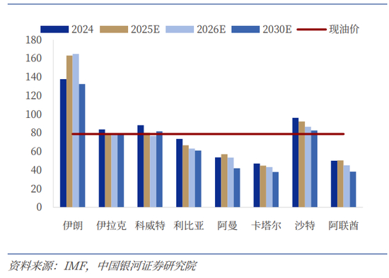 正如中国银河证券所研究的,伊朗,伊拉克,科威特,利比亚财政预算盈亏平衡油价分别为137.7美元/桶、83.8美元/桶、88.2美元/桶和73.5美元/桶。