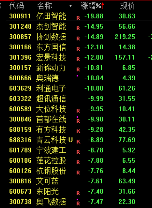 下跌方面,算力租赁概念股下挫,利通电子、超讯通信跌停。