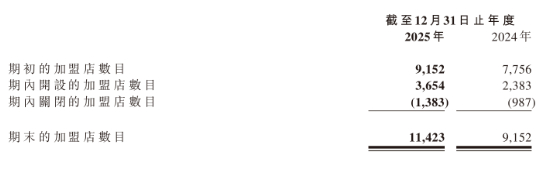 2025年,沪上阿姨新开3654家加盟店,关闭1383家,净增约2273家,与上年持平,不过闭店率高达12%,每新开3家门店就有1家关闭;茶百道全年净增仅226家,扩张几乎停滞;奈雪的茶则是五家中唯一门店总数净减少的品牌,全年关闭超150家经营不善的直营门店,加盟门店仅小幅增长13家至358家。