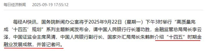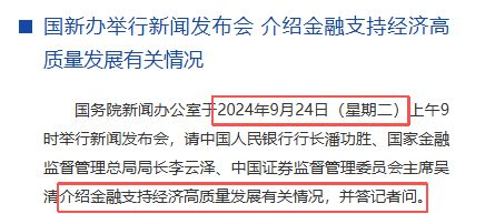 当然,可能会有投资者反驳:“下周一,国新办举办重磅新闻发布会,潘功胜、李云泽、吴清、朱鹤新等出席。去年9月24日也是这样规格的会议,开启了A股的牛市。”