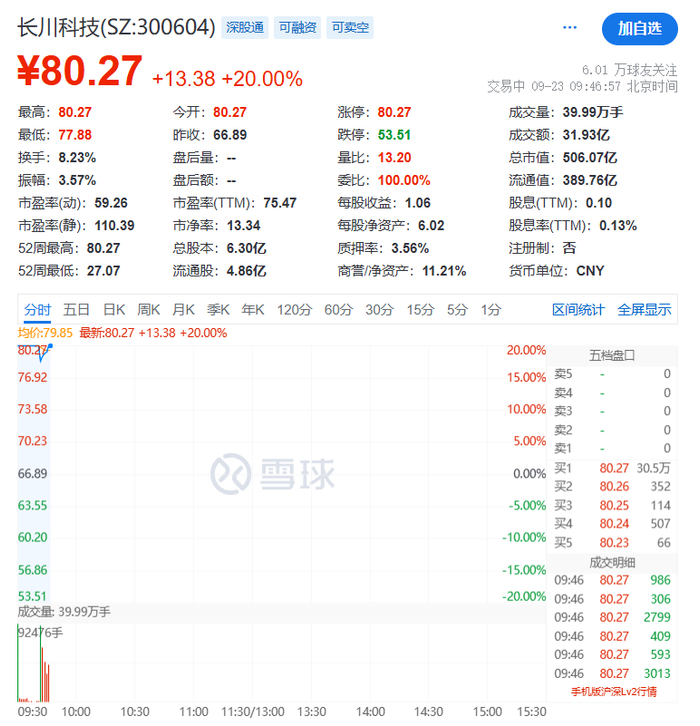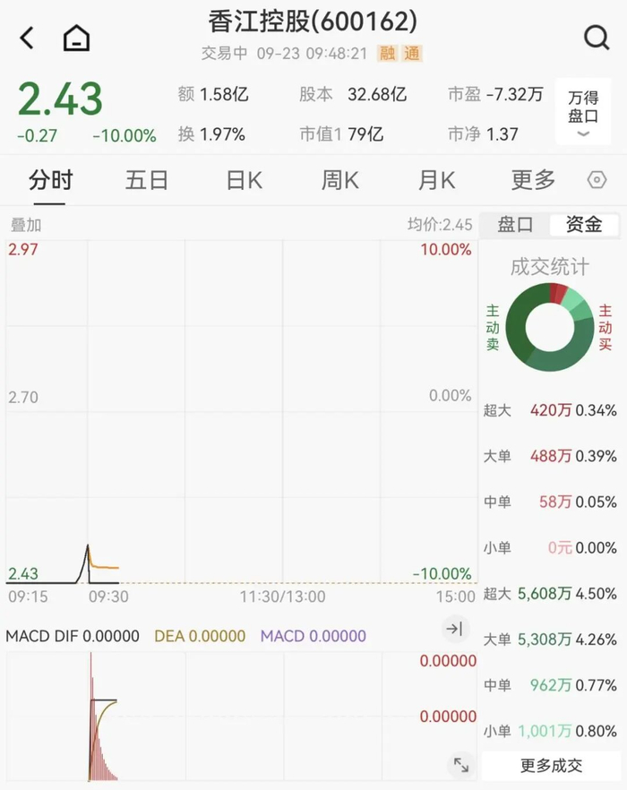 9月23日早盘,高位人气股跳水,首开股份、云南旅游、香江控股跌停,金逸影视、青山纸业、公元股份、吉视传媒等快速跟跌。