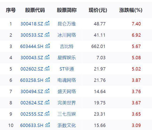 9月25日,游戏板块持续走高,再度成为A股最靓的仔。截至收盘,昆仑万维(300418.SZ)、冰川网络(300533.SZ)、吉比特(603444.SH)、星辉娱乐(300043.SZ)、ST华通(002602.SZ)均大涨超5%。