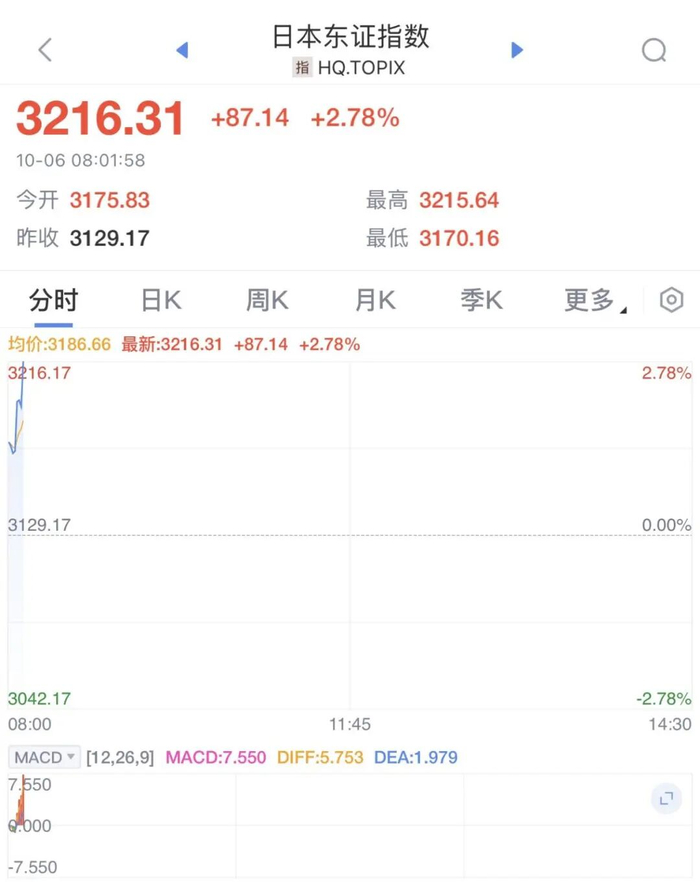 10月6日,日经225指数日内涨超4%,最高涨近2000点;最新报47699.96点,创历史新高。