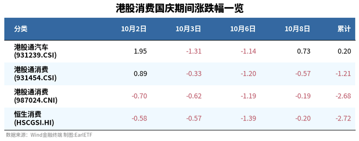 港股消费,包括港股汽车,在整个国庆期间,涨少跌多,表现疲弱。