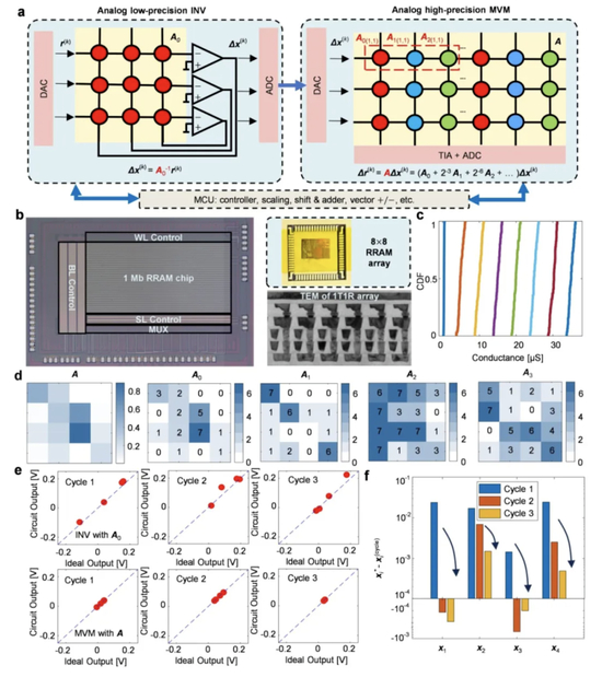 近日,北京大学人工智能研究院孙仲研究员团队联合集成电路学院研究团队,成功研制出基于阻变存储器的高精度、可扩展模拟矩阵计算芯片,首次实现了在精度上可与数字计算媲美的模拟计算系统。