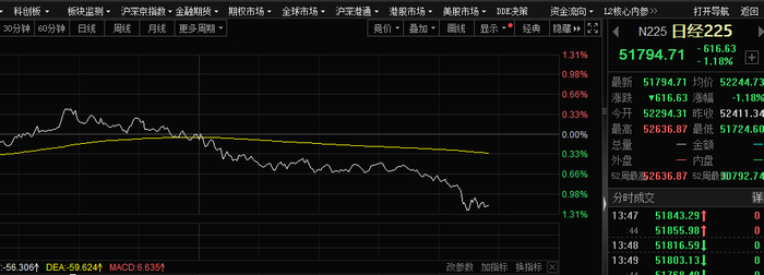 今日午后,日本股市由涨转跌,且跌幅快速扩大,截至券商中国发稿,日经指数跌幅达到1%以上。