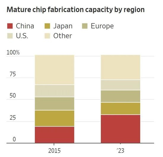 其二是半导体领域。报道指出,目前中国占据全球约三分之一的成熟制程半导体产能,这类芯片虽生产难度低于尖端芯片,却是汽车、消费电子和国防等行业的关键组件。为实现自给自足,中国已投入数十亿美元建设半导体制造能力。