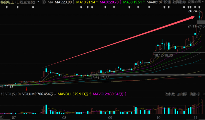 在这种预期之下,电气股迎来大爆发,热度最高的当属特变电工。