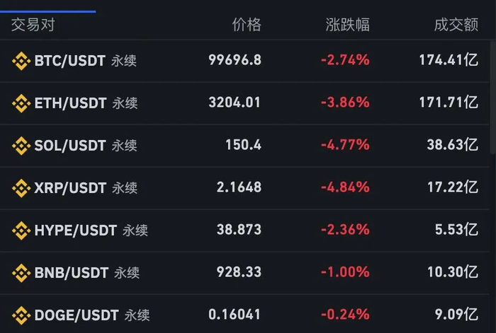 加密货币市场全线跳水,24小时内,全球近24万人爆仓。比特币再次失守10万美元整数关口,现跌2.74%。