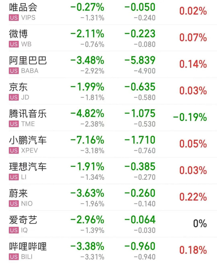 热门中概股多数下跌,小鹏汽车跌超7%,阿里巴巴、蔚来、哔哩哔哩跌超3%,微博、爱奇艺跌超2%,京东、理想汽车跌超1%。