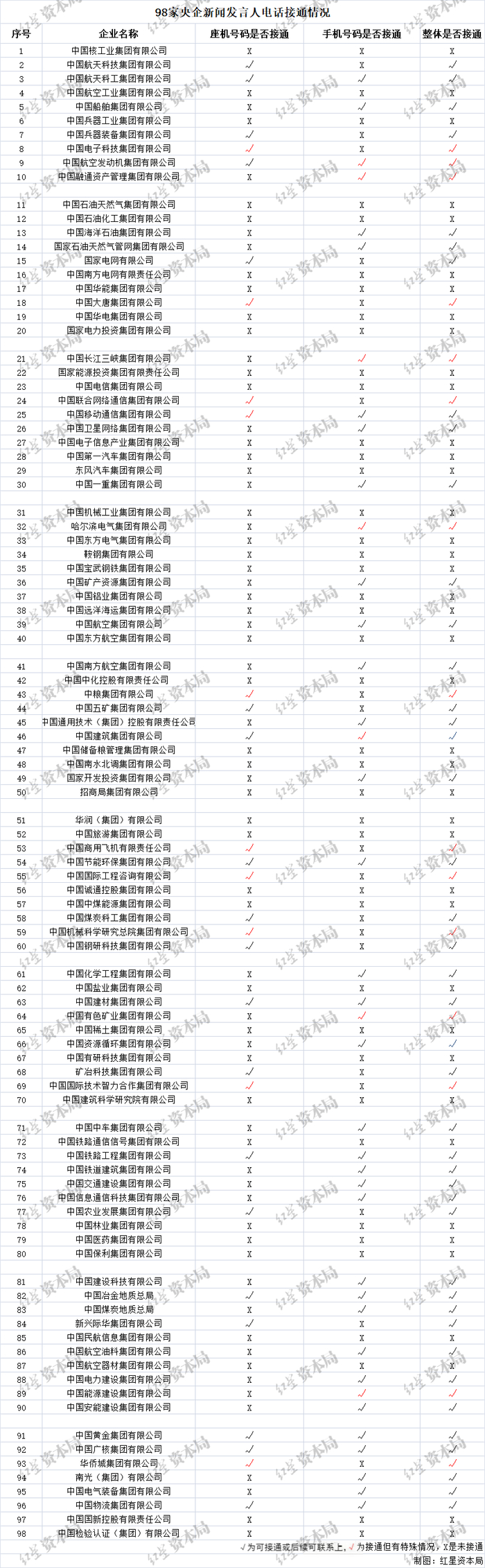 实测98家央企新闻发言人电话:接通率58%,个别是空号,还有人表示打错了